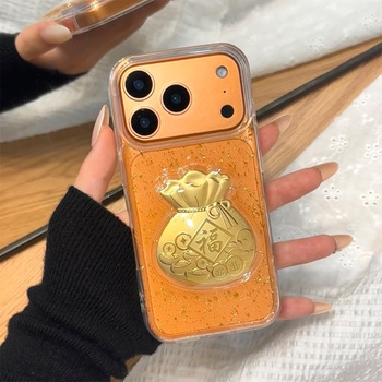 נייר זהב 3D תיק מזל תיק שנה חדש מקרה טלפון עבור iPhone 16 בסגנון סיני מקסימום סגנון 17 אוויר שקוף אופנה tpu 15 כיסוי טלפון