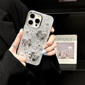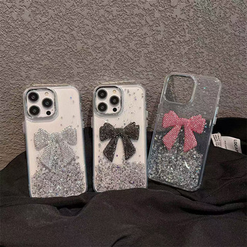 ל-iphone 16 מקרה rhinestone פנינה קשת עניבת אפוקסי קוריאני סגנון iphone 14 במקרה של נשים פרפר פרפר 15 מקסימום 13 פלוס 12