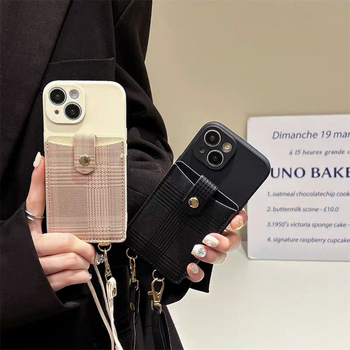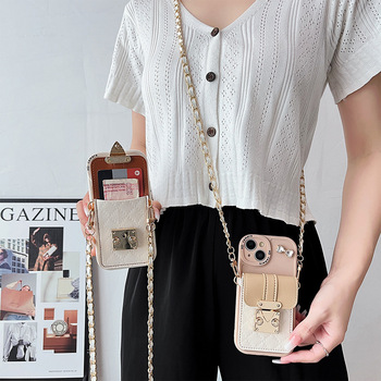 Crossbody Dây đeo với chuỗi Ví chủ thẻ khóa Khóa lỗ tốt trường hợp điện thoại cho iPhone 16 15 Promax 14 cộng với 13 12 11 17 xsmax