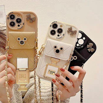 Nước Hoa Chai Lật Gương Với Crossbody Chuỗi Trở Lại Dây Đeo Đồng Xu Ví Chủ Thẻ Điện Thoại Trường Hợp Đối Với iPhone 17 Promax 16 Cộng Với 15 12